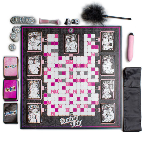 Fantasy Play é um jogo erótico de tabuleiro para casais que mistura sedução, desafios sensuais e uma busca excitante por fantasias ocultas. Ambientado num palácio rococó do século XVIII, cada sala oferece experiências únicas — massagem, beijos, BDSM, brinquedos, posições, voyeurismo e muito mais. Divertido, envolvente e repleto de possibilidades picantes, é perfeito para elevar a intimidade e descobrir novos desejos juntos.